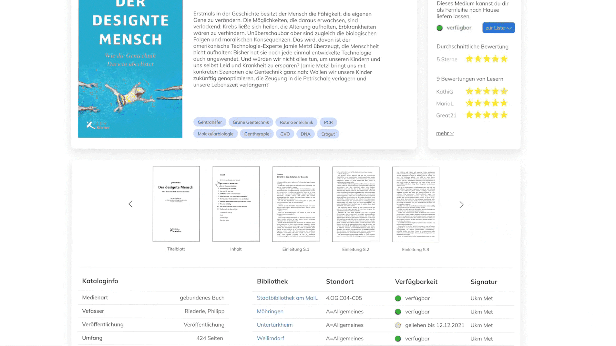 When clicking on a medium, the user gets an insight into the medium to be able to decide, whether the book meets the requirements.